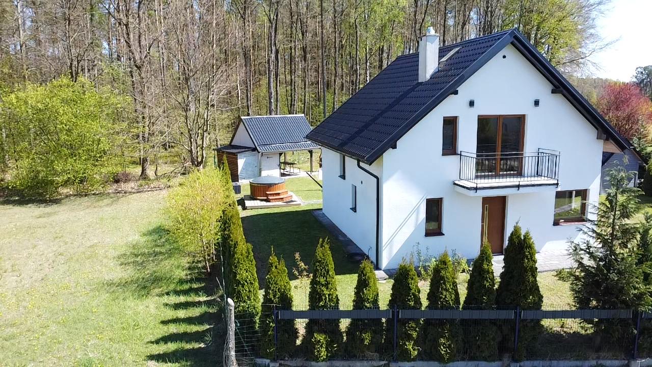 gdzie do państwa dyspozycji – altanka z oświetleniem , murowany grill, meble ogrodowe, huśtawki, piaskownica, parking, własne wejście do lasu.